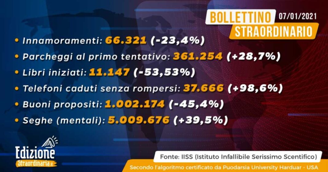(Fonte: Istituto Infallibile Serissimo Scientifico – IISS – secondo l’algoritmo certificato da Puodarsia University Harduar – USA)